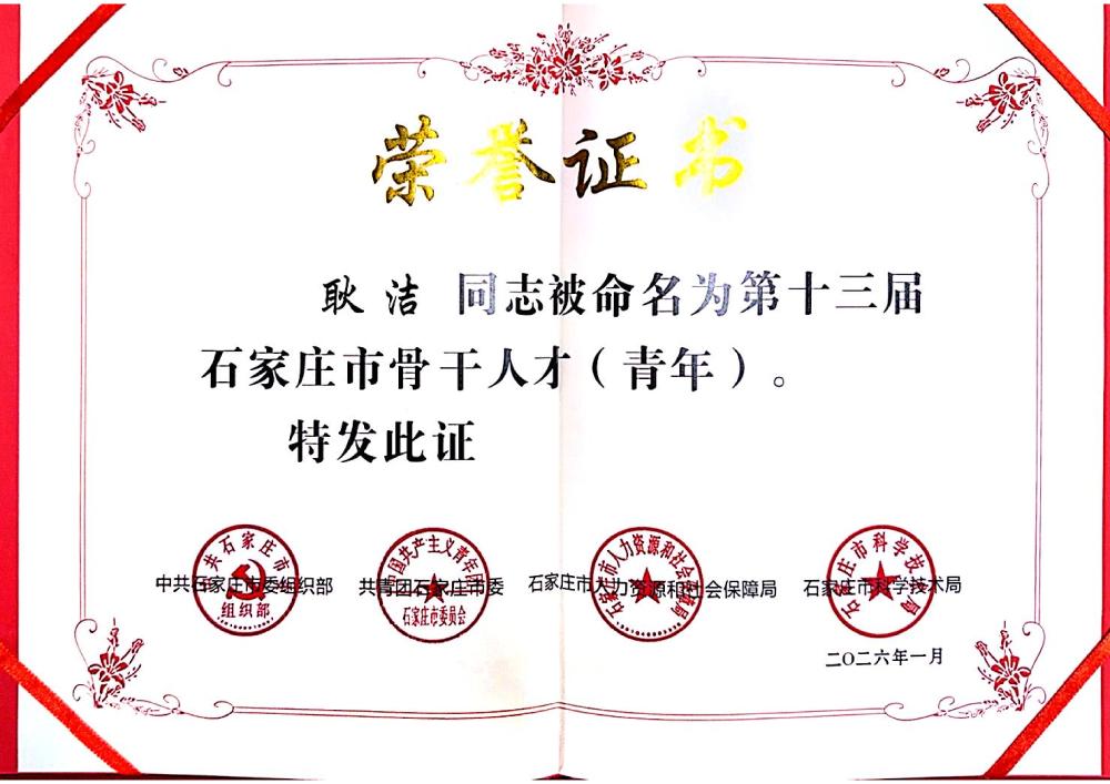 我校青年教师耿洁荣获“第十三届石家庄市骨干人才(青年)”称号