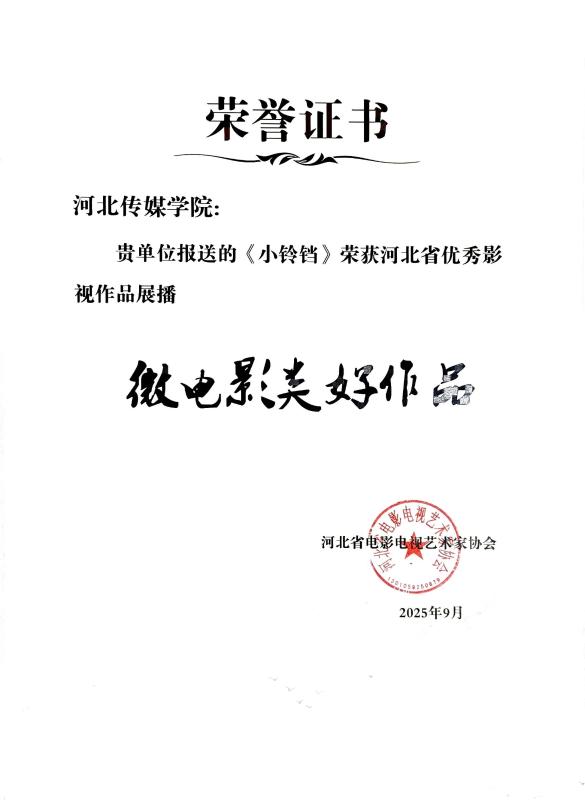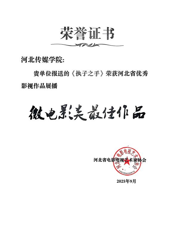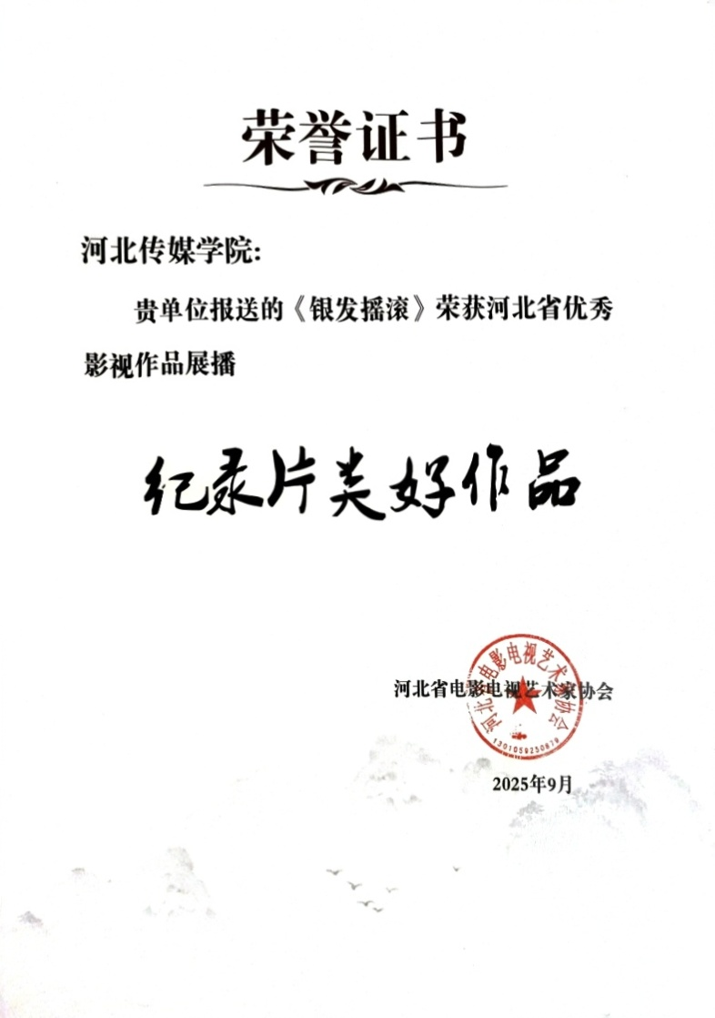 9月28日,“丛台之光 影响未来”河北省优秀影视作品暨第九届邯郸市优秀影视作品展播推介活动在邯郸新闻传媒中心演播厅圆满落幕。在此次评选中,河北传媒学院影视艺术学院报送的作品荣膺三项大奖,微电影 《执子之手》 荣获微电影类最佳作品奖,微电影 《小铃铛》 荣获微电影类好作品奖,纪录片《银发摇滚》荣获纪录片类好作品奖。其中《执子之手》与《小铃铛》作为我校精品短视频扶持项目,已在国内多项赛事中斩获奖项。