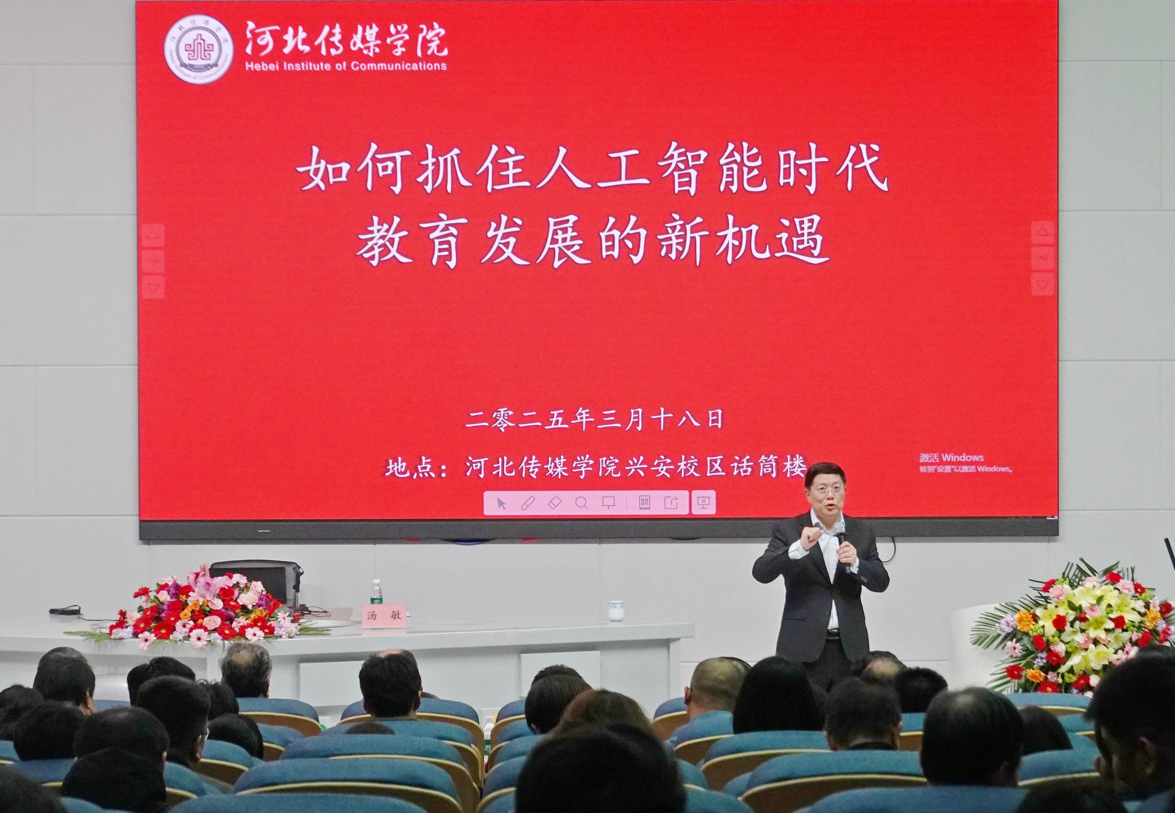 为深入推动人工智能与教育教学的深度融合,3月18日下午,我校邀请专家在兴安校区举办了“如何抓住人工智能时代教育发展新机遇”的专题讲座。本次讲座由国务院原参事、著名经济学家、教育改革专家汤敏教授主讲,副校长李建平主持。校长李锦云、党委书记赵红星、政府督导专员贺海宏、常务副校长王锡朝,副校长毕根辉、李兴国、杜会强、高晓峰,校长助理卢红玲、刘瑞红、张川、韩景元,及全体中层干部、全体辅导员、部分机关干部近300人参加讲座,共同探讨人工智能时代下的教育变革与发展路径。